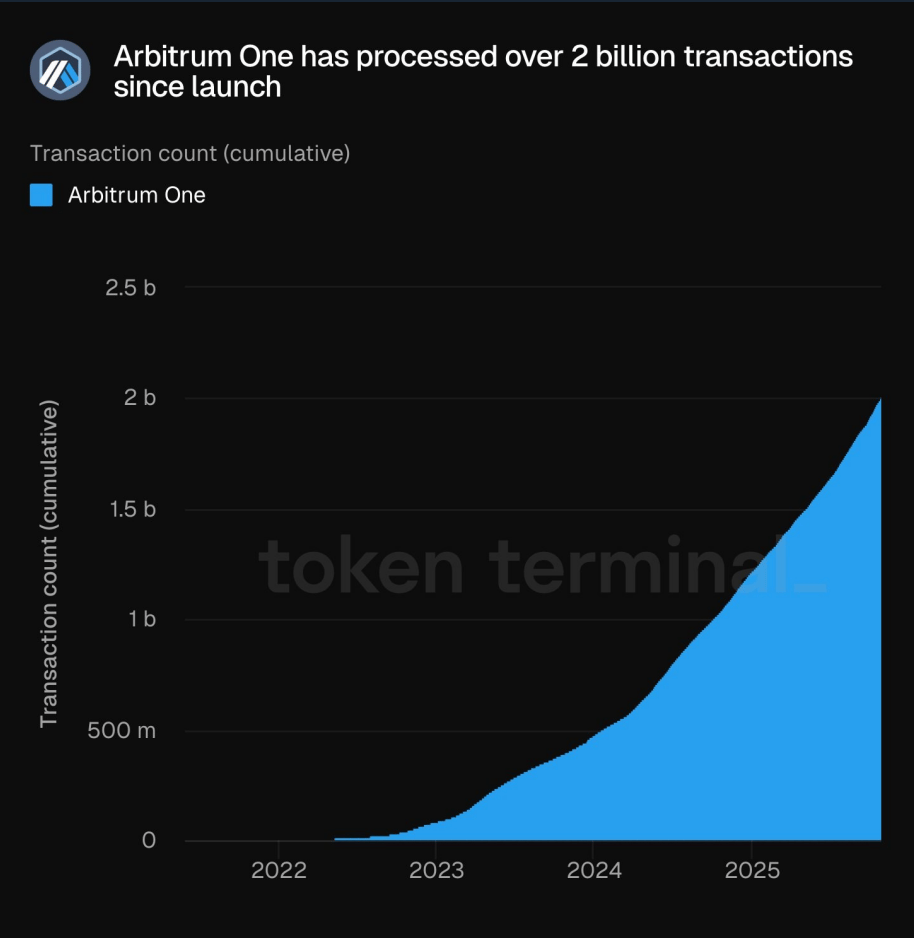 Arbitrum One recently crossed 2B cumulative transactions, with the curve steepening through 2025—evidence that rollup throughput is scaling where users actually transact. It’s a solid validator for the L2 thesis and for Arbitrum’s share of on-chain activity. Caveat: cumulative counts can hide churn, so the next checks are sustained DAUs, fee revenue, and settlement volume back to L1. If those hold up, this isn’t just bursty growth—it’s durable usage.