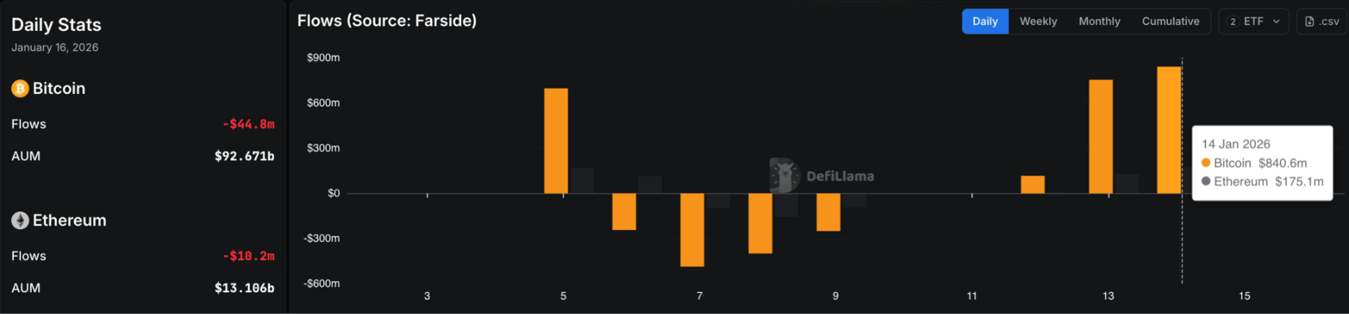 BTC pushed to a two-month high alongside a clear turnaround in ETF flows, marking the strongest inflow week in roughly three months.