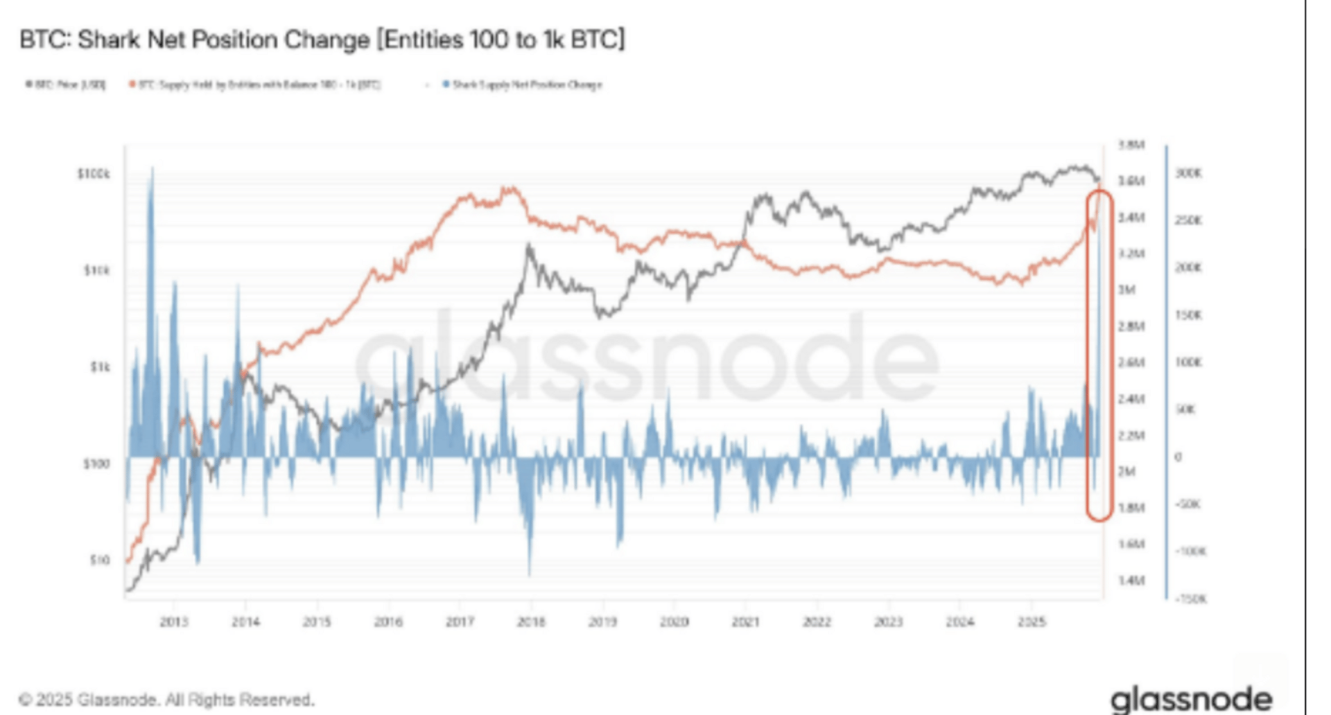 Long-term holders are active, but it’s distribution into strength, not a panic exit. The 30-day LTH distribution metric has surged to cycle-high levels, yet overall LTH supply remains near record territory and only modestly off the highs. That implies supply is being absorbed rather than dumped wholesale, constructive if spot demand holds.