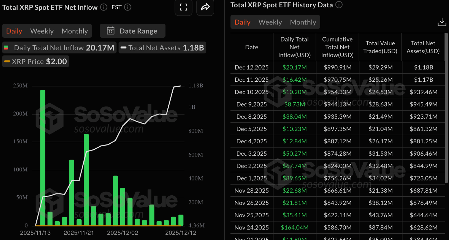 Institutional activity and market structure developments continued to build beneath the surface. Strategy disclosed an additional $980M BTC purchase, while BitMine added $141M more ETH and separately reported a larger $321m ETH buy, reinforcing ongoing balance-sheet accumulation. Market access broadened further as spot XRP ETF inflows surpassed $1B and CME launched spot-quoted XRP and SOL futures.
