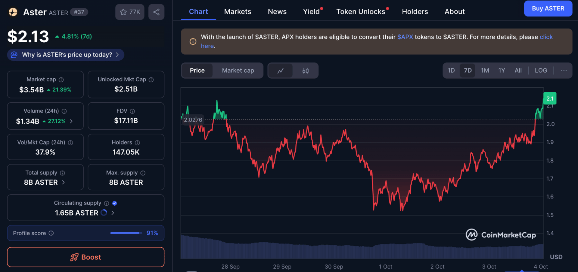 Solana remains in focus too: Visionsys revealed plans for a $2B SOL DAT, Phantom launched a native stablecoin, and Republic said it will tokenize Animoca equity on Solana, reinforcing institutional interest. Avalanche activity remains strong, with Avalanche Treasury Co. merging with a SPAC, while ASTER rebounded to an $18B FDV after its Singapore event.